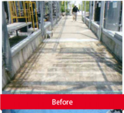 | ・工場外の縞通路への滑り止め工事の施工例 | ||
